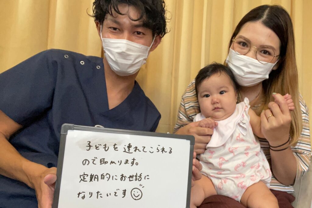 産後骨盤矯正と肩こりの施術を受けていたお客様です。