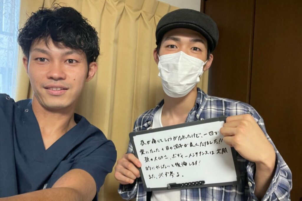 首が辛くてしょうがなかったお客様ですが、一回の施術で首と眼精疲労も改善しました!