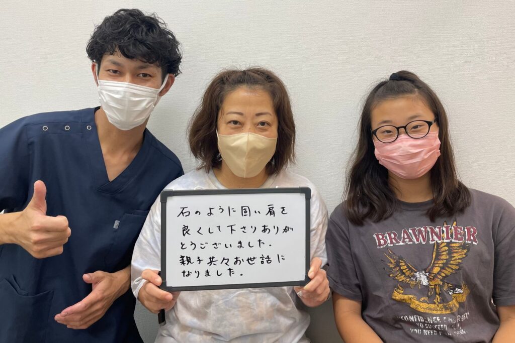 介護職で全身の緊張が強くなってしまっていたお客様です。娘さんもスポーツで膝を痛めたり、反り腰の改善の施術させてもらいました!